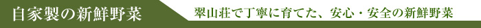 翠山荘でお出ししている野菜はほとんどが自家製。いつでも安全で新鮮なものを食していただきたいとの思いで、心を込めて育てています。東鉢伏高原の大自然で育まれた野菜は、お肉や魚介類との相性もぴったりです。 |